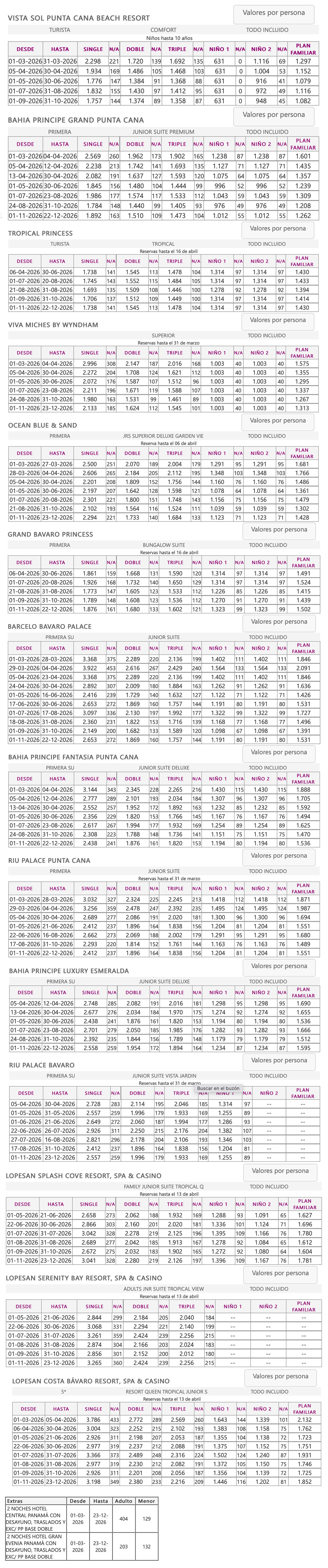 Programas no incluyen impuestos ambientales de México valor aproximado USD 3 por habitación por noche, se debe pagar en destino.
